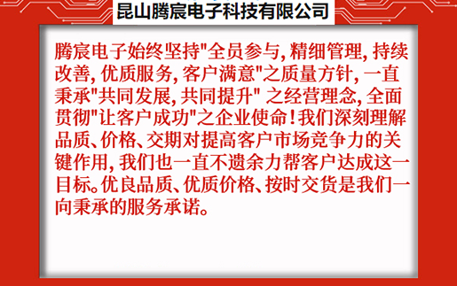 昆山騰宸電子科技有限公司位于中國線路板加工之都昆山千燈,公司專注于電路板研發(fā)設計、PCB抄板、元器件采購、SMT貼片加工、組裝測試,為客戶提供一站式電子制造服務。騰宸電子始終堅持"全員參與,精細管理,持續(xù)改善,優(yōu)質服務,客戶滿意"之質量方針,一直秉承"共同發(fā)展,共同提升" 之經(jīng)營理念,全面貫徹"讓客戶成功"之企業(yè)使命!我們深刻理解品質、價格、交期對提高客戶市場競爭力的關鍵作用,我們也一直不遺余力幫客戶達成這一目標。優(yōu)良品質、優(yōu)質價格、按時交貨是我們一向秉承的服務承諾。 ...